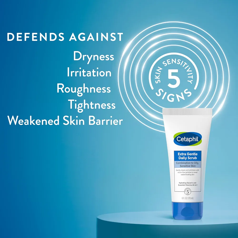 CETAPHIL Extra Gentle Daily Scrub is uniquely designed for sensitive skin, with micro-fine granules that gently buff away dry, dull skin to reveal a radiant glow. This 3-in-1 formula cleanses skin of dirt, oil and impurities, exfoliates and nourishes skin with a vitamin complex and skin conditioners to leave skin touchably soft. Dermatologist tested and clinically shown to be non-irritating, non-comedogenic and hypoallergenic. For best results, follow with a CETAPHIL moisturizer to lock in hydration all day long.