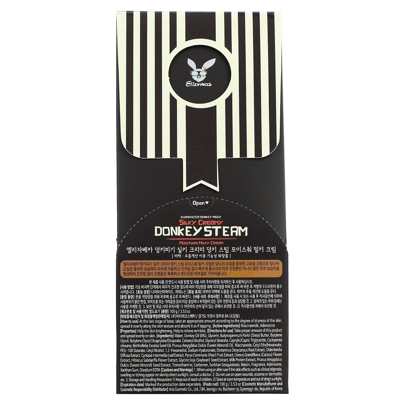 Ingredients Water, donkey oil (6%), glycerin, butyrospermum parkii (shea) butter, butylene glycol, butylene glycol dicaprylate/dicaprate, cetearyl alcohol, glyceryl stearate, caprylic/capric triglyceride, cyclopentasiloxane, bertholletia excelsa seed oil, prunus amygdalus dulcis (sweet almond) oil, niacinamide, cetyl ethylhexanoate, peg-100 stearate, cetyl alcohol, 1,2-hexanediol, sodium hyaluronate, dictamnus desycaprus root extract, oldenlandai diffusa extract, cyclopia intermedia leaf extract, pyrus communis (pear) fruit extract, cereus grandiflorus (cactus) flower extract, hibiscus sabdariffa flower extract, glycine soja (soybean) seed extract, milk protein extract, prunus amygdalus dulcis (sweet almond) seed extract, tromethamine, carbomer, sorbitan sesquioleate betain, fragrance, adenosine, xanthan gum, disodium edta.