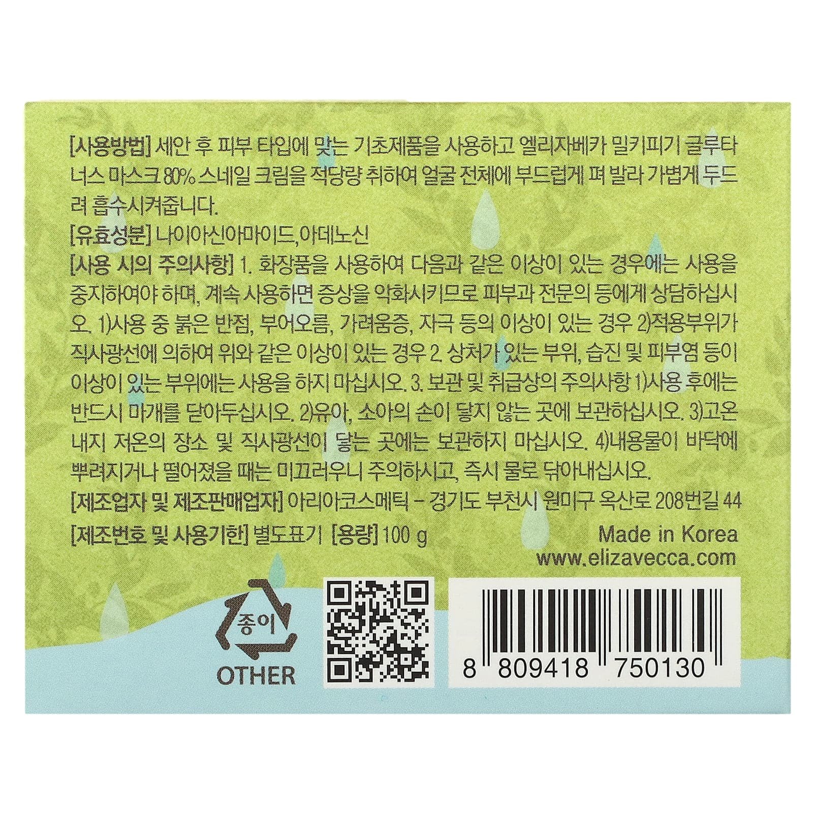 Elizavecca, Glutinous 80% Mask Snail Cream, 100 g