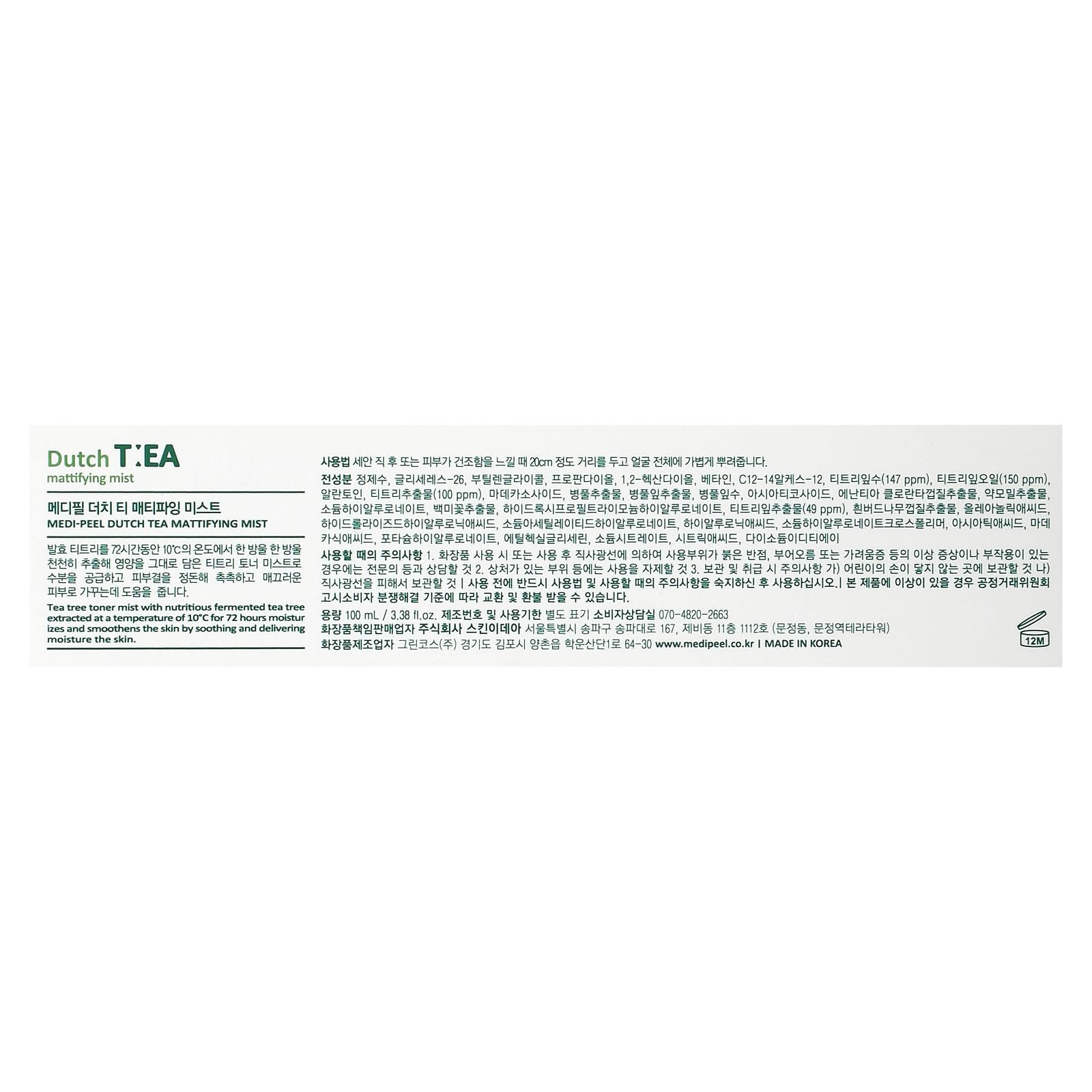 Dutch Tea Mattifying Mist with cold brewed tea tree extract has been created for moisturizing, smoothing out your skin.