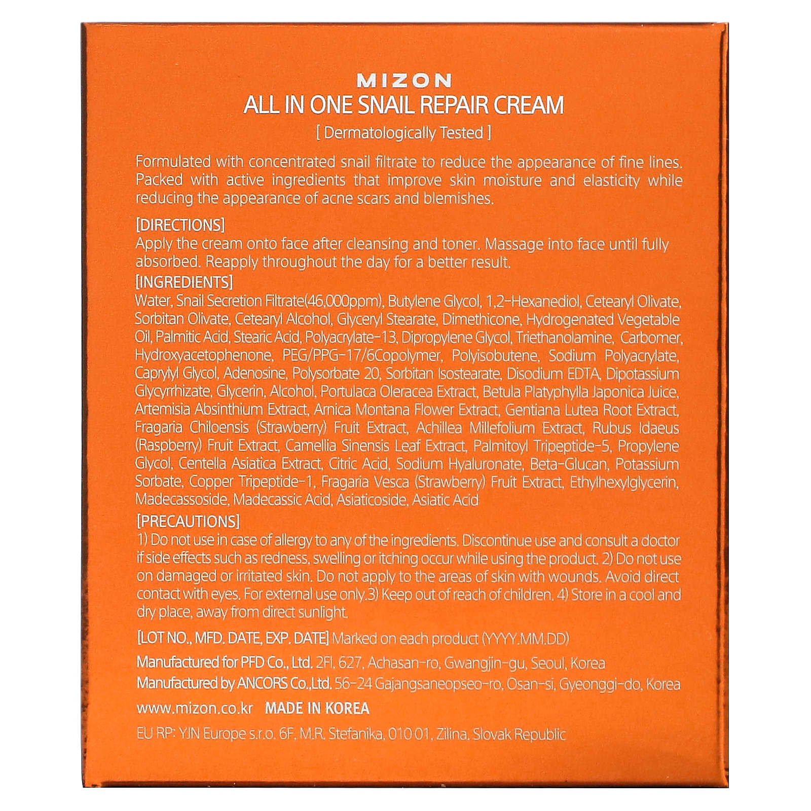 Mizon, All In One Snail Repair Cream, 2.53 fl oz (75 ml)