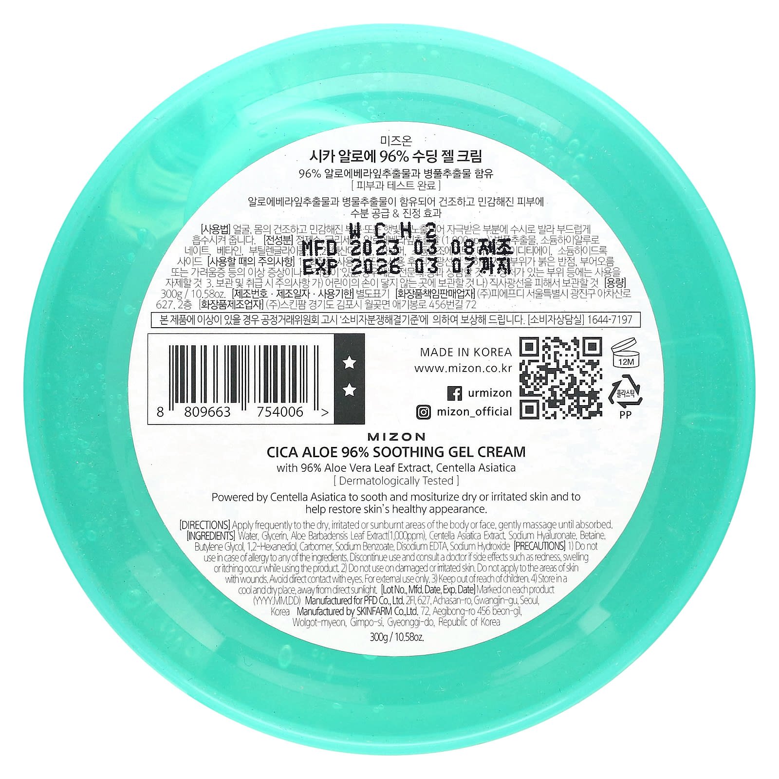 Mizon, Cica Aloe, Soothing Gel Cream, 10.58 oz (300 g)